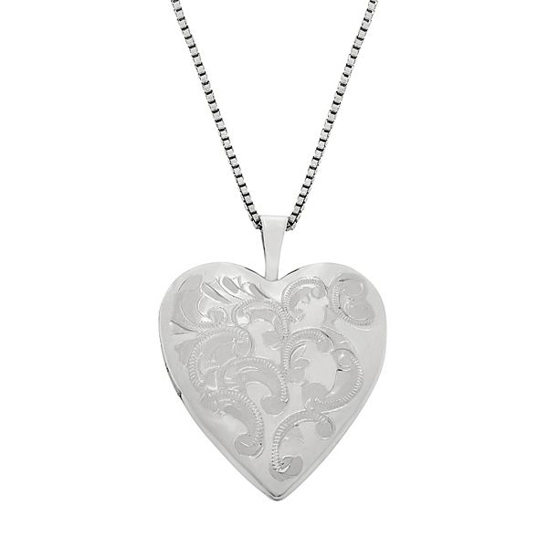 Full Scroll Heart Engraved Locket Silver Lovelox